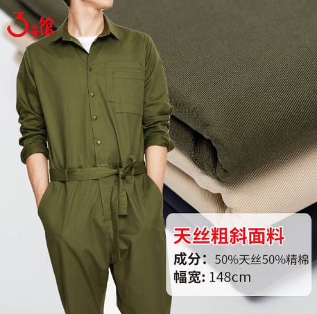 天丝粗斜布料:布料的成份为50%天丝+50%精棉,织物整体吸湿透气性非常不错,手感细腻且非常亲肤,做成阔腿裤后有着很好的悬垂性,布料价格为33元每米。
